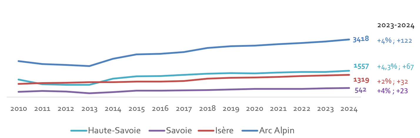 On observe cette augmentation sur les 3 départements : +2% en Isère (+32 pvvih), +4% en Savoie (+23 pvvih) et +4.3% en Haute-Savoie (+67 pvvih).